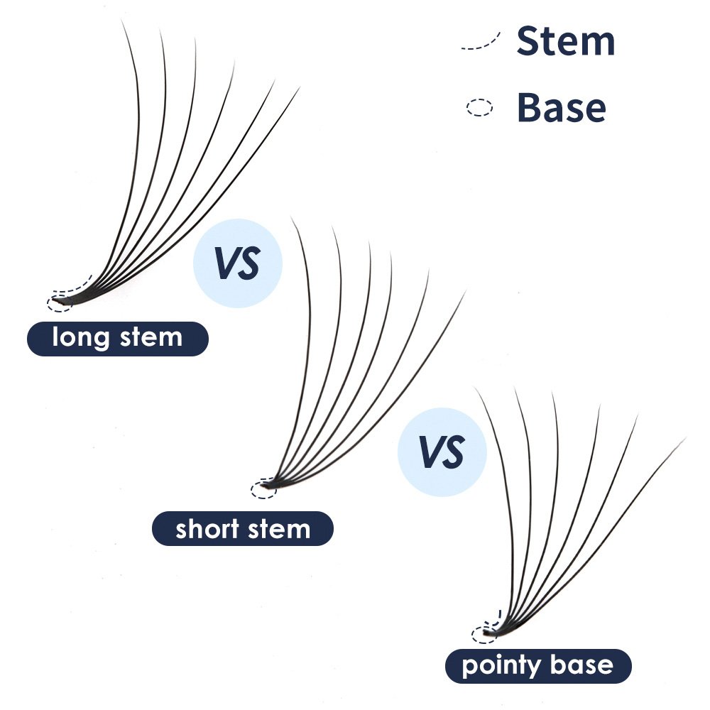 Long stem fans typically create a more dramatic and structured lash look, while short stem fans often provide a softer, fluffier appearance.